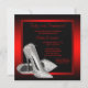 Elegante preto e vermelho brilhando alto salto calçado o quinquagésimo convite de aniversário da mulher. Este belo convite de aniversário preto e vermelho é facilmente personalizado para o seu evento adicionando detalhes do evento, estilo da fonte, tamanho da fonte e cor e texto. Observe que todos os adesivos, cartões e designs de convite que você encontrará no Zazzle são gráficos impressos sem joias reais, arcos, levantados, gravados, ou peças ou peças adicionadas.