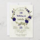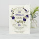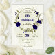Belos convites de festas de aniversários românticos, com flores azuis reais e beige e algumas folhas. PARA MAIS PRODUTOS CORRESPONDENTES, clique na coleção acima ou entre em contato comigo