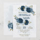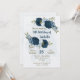 Belo convite de aniversário romântico com flores azuis marinhos e azuis leves e poeirentas e algumas folhas bonito. PARA MAIS PRODUTOS CORRESPONDENTES, clique na coleção acima ou entre em contato comigo