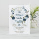 Belo convite de aniversário romântico com flores azuis marinhos e azuis leves e poeirentas e algumas folhas bonito. PARA MAIS PRODUTOS CORRESPONDENTES, clique na coleção acima ou entre em contato comigo