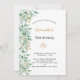 Um convite moderno e bolsa mensageifesta de aniversario elegante para uma festa de aniversário de 50 anos (ou qualquer idade). Um fundo branco-quic decorado com prigos botânicos de ouro verdes e falsos, florais verdes e folhagem. O nome é escrito com um script de estilo manchado de tendência. Texto preto e ouro. Perfeito para uma festa de primavera ou de aniversário de verão para homens, caras e mulheres. Verso: cor verde do fundo.