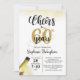 Convites Aniversário CHEERS PARA # ANOS Script Dourado Pret
