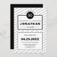 Convite simples com formas geométricas, linhas e retângulos em preto e branco