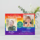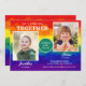 Convites de aniversário conjuntos com fundo colorido do arco-íris, com tipografia vibrante e duas fotos da sua escolha.