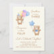 Convites de aniversário conjuntos que incluem dois ursos bonitos com chapéu de festa azul e fita com balões coloridos. Ideal para festa de aniversário comum de rapazes.