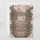 Convites Aniversário cor-de-rosa floral rústico do 80 da