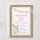 Um convite de aniversário feminino com um esquema de cores cor-de-rosa e verde. A estamenha é guingão verde e damasco cor-de-rosa. A ilustração de um vidro da limonada cor-de-rosa com limões saiu no fundo. O fundo é serapilheira inspirada.