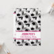 Um design impressionante do futebol do futebol que caracteriza um teste padrão da bola de futebol com bolas de futebol em toda parte! O texto, que pode ser personalizado, é caracterizado no texto cor-de-rosa em uma listra branca com acentos cor-de-rosa semi transparentes para mostrar embaixo o teste padrão. Um grande convite de aniversário para a menina ou a mulher que ama jogar o futebol ou é um fã de futebol.