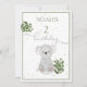 Uma Koala fofa com folhas de eucalipto e manchas de ouro é a base do convite de aniversário desta criança. Verde com manchas de ouro este bonitinho Koala está na frente e atrás deste convite de aniversário personalizado. Altere facilmente as informações para o seu próprio design personalizado.