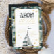Estes convites de aniversário de marinho náutico apresentam barcos a vela a cores, âncoras e um céu estrelado. Perfeito para festas de aniversário infantis.