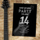 Banda aniversário, modelo de convite preto com design de violão elétrico. Texto em relevo em tons de cinza sobre preto. Sua idade está em grandes números com nome acima. A primeira linha da amostra é "Banda aniversário", que poderia ser simplesmente "aniversário". Adicione todas as informações da parte no parágrafo abaixo da idade. O reverso tem uma design de cinza. Escolha a opção de download instantâneo para compartilhar digitalmente.
