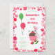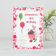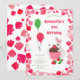Muito encantador, o Convite de Aniversário da Garota Cupcake Coelhinha e Morango apresenta um belo coelho branco com um arco cor-de-rosa colado contra um cupcake em um revestimento de cor-de-rosa suave. O cupcake é revestido com glacé fluffy, aspergido em branco e rosa, e coroado com um suculento morango vermelho. Por baixo dessa cena alarmante está um monte fresco de morangos na vinha, adicionando uma pop de cor natural e cinza. À esquerda do coelho flutua um belíssimo balão vermelho e verde, enquanto uma abelha divertida flutua para cima, adicionando movimento e um toque de magia da floresta. O cartão é emoldurado com uma vibrante borda de morango, amarrando o tema junto com tons vermelhos brilhantes e detalhes doces. Este convite de aniversário de cupcake coelho é perfeito para meninas que amam doces, amigos da floresta e temas de festa de morango. Escolha de querido para um convite de aniversário de morango, ele captura a alegria e inocência da celebração de uma criança.