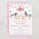 Este adorável convite apresenta animais de fazenda com balões e falsos poços de ouro.