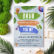 Legal Convite de Aniversário para a Festa de Piscina Branca. Este design apresenta ilustrações vibrantes de aquarela do verão e o texto lúdico "Bruh, natação, comida livre e bebidas, - Você está?". A modelo moderna e divertida é fácil de personalizar com os detalhes do seu próprio partido