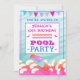 Adicione um pouco de flash ao seu salto com este convite de aniversário de piscina de natação divertida! Design apresenta peixes nadando felizes e ondas coloridas. A parte traseira do convite apresenta os detalhes da sua parte. Uma forma excelente de convidar a família e os amigos para a sua comemoração de aniversário!