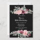 Este elegante convite de aniversário da flora apresenta uma flor rosa-rosa-burro com folhas e um arranjo verde num pano de fundo preto.