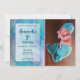 Caracterizando uma sereia ate o teste padrão e cores oceânicos. Vibrante e bonito. Personalize este cartão liso do convite do aniversário com nome do seu bebé, foto, local de encontro do evento, data, tempo, e sua informação de RSVP.