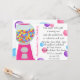 Comece sua festa de doces com o convite de aniversário da garota super bonita. Nosso convite de festas de doce único apresenta uma máquina de bolas de goma rosa e bolas de goma rosa, azul e roxa. A parte de trás do convite tem bolas de chiclete e coordenadas com a frente. Apenas personalize com suas informações e você está pronto para ir! ©JWIllustrations