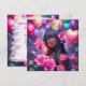 Bonito convite personalizado de aniversariante. Gráficos bonitos de uma bela garota afro-americana cercada por balões e flores roxos e rosa. Bonito convites para uma adolescente ou pré-adolescente. . As cores são cor-de-rosa e roxa. Isso seria bonito para qualquer adolescente ou festa de aniversário 16.