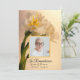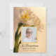 Convide os convidados a lembrar-se do seu amado, um ano depois da sua morte, com o elegante Convite de Aniversário da Morte das Flores Brancas Duplas. Esta elegante celebração personalizada do memorial do tributo de vida apresenta uma fotografia floral digitalmente pintada de flores de narciso branco em caules verdes com fundo creme. Disponível como convite impresso para envio e/ou como download digital para fácil compartilhamento digital online.