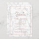 Convites modernos e elegantes para o aniversário da morte com o nome e o título do seu amado em um grande roteiro no topo e detalhes de seu evento em um falho rosa, dentro de uma fronteira, sobre uma cinza e fundo de mármore branco. Um chic e na moda para ela.