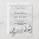 Uma placa moderna de convite de festas aniversário de 40 anos. Um fundo metálico prateado sujo, com notas musicais, letras negras coloridas.Decorado com poeira falsa brilhante. Personalize e adicione um nome e informações da parte.