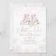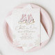 Convide amigos e família para a sua festa de aniversário com este convite temático de patinação no gelo, com flocos de neve rosa e dourados.