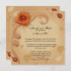 Este lindo design, chamado Rosa Laranja no Outono, seria uma maneira elegante e dramática de definir o tom para o seu aniversário de casamento ou evento. O fundo é de cor creme escuro com uma fita de cor pêssego escuro e folhas coloridas de outono. No canto superior esquerdo está uma linda rosa laranja.