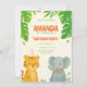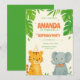 Jogue a festa de aniversário mais bonita de matas-da-selva com este adorável Convite de Aniversário da Selva Safari! Apresentando um sorridente tigre de bebê em um chapéu de festa e um elefante de bebê com gravata de arco, este design ao estilo aquarela é enquadrado com folhas verdes e peludas tropicais e confete, fazer perfeito para a festa de aniversário de um menino ou menina. Perfeito para: ・Convites de Aniversário para Safari Selvagem ・Festas para Crianças Pensadas em Animais ・Convites de Aniversário Neutro em Gênero ・Modelo de Design para de Partido Imprimível ou Digital Destaques: ・Animais de aquarela pintados manualmente ・Folhas verdes tropicais e layout lúdico ・Suave, fundo neutro perfeito para sobreposição de texto