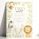 Crie o chá de fraldas ou festa de aniversário com o tema da selva perfeito com este adorável fundo de convite para animais safari! Apresentando ilustrações de cor d'água pintadas à mão de uma zebra fofa, elefante para bebês, leão e macaco, cercado por folhas tropicais moles e sotaques florais. Ideal para chás de fraldas neutros de gênero, aniversários de primeiro ano e decoração do partido de berçário. Este design é perfeito para convites imprimíveis para o DIY, anúncios de bebês ou artigos de papelaria para eventos de temas da selva.