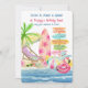 O convite de aniversário da garota - perfeito para a festa de praia de verão ou festa de piscina para crianças, adolescentes e bebês de praia divertidos! O design tem uma cena de praia de verão cheia de prancha de surfe, flamingo rosa inflável, bola de praia, palma tropical e flores. O título atual diz "venha fazer um salto no bash de aniversário do [name's] ... traga sua roupa de banho e toalha", o que é totalmente editável. Os detalhes de convite restantes impressos no aviso de direção e, se você precisar reduzir o tamanho da fonte, você poderá fazer isso clicando em "editar usando a ferramenta design".