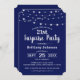Shhhhh........ Convite de aniversário surpreendente simples e elegante, com luzes acesas com letra branca sobre fundo de marinho e modelo de aniversário que é fácil de personalizar. Adequado para qualquer idade ou sexo.