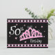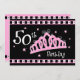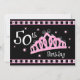 Certifique-se tratar sua rainha do aniversário como direitos com estes convites de festas de aniversários do divertimento 50th. Caracterizando uma tiara cor-de-rosa coberta nas jóias contra um fundo preto. O texto dianteiro diz o 50TH ANIVERSÁRIO. O texto inteiramente customizável suporta sobre para toda sua informação do partido. Selos postais coordenados, t-shirt, sacolas, canecas, etiquetas e mais também disponível. Original de PinkInkArt!