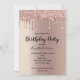 Um convite de aniversário que é vírgula e moda. Rosa dourado, brilho por gota. Personalize todas as seções do convite.