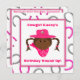 Este os convites de festas de aniversários adoráveis para meninas são o começo perfeito a cada festa de aniversário temático da vaqueira! O convite tem um fundo branco com com o cor-de-rosa e o de prata metálico-como ferraduras. É no centro uma área contínua do quadrado branco com guarnição do rosa quente. Há um gráfico dos desenhos animados de uma vaqueira pequena do afro-americano com cabelo preto. Esta vaqueira pequena bonito tem freckles das tranças e pouco sorriso em sua cara. Está vestindo um chapéu da vaqueira do rosa quente com uma estrela brilhante dos xerifes do metal do ouro. Em torno de seu pescoço é um bandanna do impressão de paisley do rosa quente. Há um texto no divertimento, pia batismal corajosa do rosa quente. O texto pode ser personalizado para serir suas necessidades. O verso do convite tem o mesmo fundo em ferradura com uma área branca contínua maior para seu texto, na mesma pia batismal do rosa quente. Todo o texto na parte traseira é igualmente customizável. Os convites de festas de aniversários da vaqueira do afro-americano destas crianças serão uma batida com sua vaqueira pequena e todos seus amigos da vaqueira!
