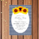 Convite de aniversário de girassol com fundo de xadrez