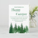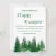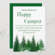 Feliz aniversário de camper com árvores florestais em vários tons de verde