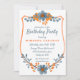 Convites Aniversário das Flores Azul e Laranja Modernas