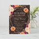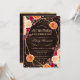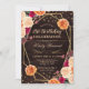 Elegante Boho Watercolor Vermelho e Laranja caem flores e design de folhagem com estrutura geométrica dourada, confete de brilho dourado e fundo de madeira russa