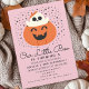 Celebre o seu bambu com uma festa de aniversário assustadora! Estes adoráveis convites de aniversário para crianças apresentam um fantasma fofo saindo de uma abóbora contra uma rosa claro—perfeito para uma festa tão doce e divertida quanto a sua pequena! Ordene agora e deixe que comecem os tempos maravilhosamente bons!