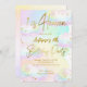 As nuvens do arco-íris do Pastel do céu brilham 7 de festa de aniversário de ouro com editável para modelo de convite instantâneo.