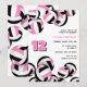 Este convite de festas temático de vôlei fofo para um aniversário ou grupo apresenta clusters de volichões cor-de-rosa, preto e branco nas bordas superior e inferior na frente e um cluster de solteiros que cobre o verso do convite - personalize os detalhes da festa em um fundo branco - por katz_d_zynes
