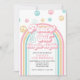 Convite de aniversário de 10 anos inspirado no arco-íris retro Peace Out Single Digits com fontes e cores estilo anos 70.