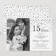 Convite de Aniversário de 15 anos de Casamento com Foto. Design elegante em prata e branco com fonte script e confetes de diamantes. Pode ser personalizado para mostrar qualquer ano de casamento. Saúde por 15 anos!