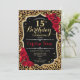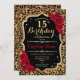 Convite de aniversário de 15. Elegante design branco preto vermelho e branco com ouro brilhante falso. Apresenta a impressão de animais leopardo cheetah, fonte de script e rosas. Perfeito para uma bolsa mensageifesta de aniversario elegante. Pode ser personalizado em qualquer ano! Envie-me uma mensagem se precisar de mais personalização.