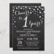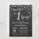 Convite de Aniversário de 1 Ano de Casamento Quadro de Giz Preto e Prata. Fundo de Diamante com Brilho Preto e Prata. Confetes Prata. Aniversário de Adulto. Festa de Aniversário de Homem ou Mulher. Para personalização adicional, clique no botão "Personalize" e use nossa ferramenta de design para modificar este modelo.