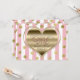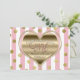 Convite de Aniversário de 1 ano do Dia dos Namorados Coração Dourado Listras Rosa. Personalize para qualquer evento.