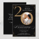 Convite de Aniversário de 20 anos de Casamento Black Gold Custom. Convite de aniversário de casamento especialmente projetado com elegância, apresentando uma foto personalizada do casal e caligrafia com elementos florais vintage. Uma maneira verdadeiramente memorável e especial de celebrar esse marco!