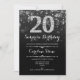 Surpresa 20 de Aniversário. Design branco preto elegante com prata brilhante falso. Aniversário adulto. Apresenta diamantes e fontes de script. Convidado para homens ou mulheres no dia. Perfeito para uma festa de aniversário na moda. Envie-me uma mensagem se precisar de mais personalização.