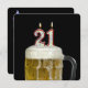 Vela de aniversário numa caneca de cerveja para aniversário de 21 anos convite de festas.